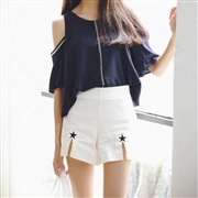 無袖民族上衣+鬆緊腰短褲 [套裝] #1-白色 #...