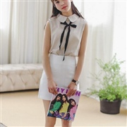 娃娃領綁帶無袖襯衫 [背心.馬甲] #1-深杏色 ...