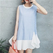 豎條紋拼接不規則魚尾裙 [連身裙]