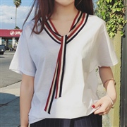 院配色領帶綁帶上衣短袖 [上衣] [TEE]