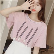 流蘇刺繡短袖純色上衣 [上衣] [TEE] #1-...