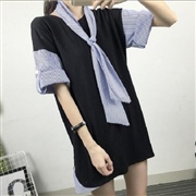 拼接寬鬆中長款中袖上衣 [連身裙]