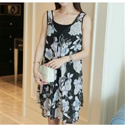 無袖背心碎花連身裙印花 [連身裙]