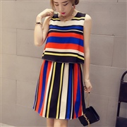 無袖雪紡條紋連身裙 [連身裙] #1-紅色 #2-...