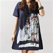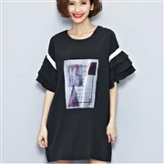 荷葉袖印花圓領短袖 [連身裙]