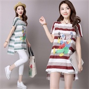 卡通米奇印花寬條紋 [上衣] #1-暗紅色 #2-...