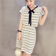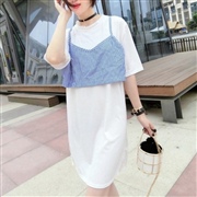 假兩件拼接條紋吊帶背心短袖連身裙 [連身裙]
