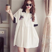 翻領卡通印花雪紡 [連身裙] #1-白色 #2-黑...