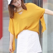 上衣顯瘦蝙蝠衫短款 [上衣] #1-黃色 #2-紅...