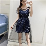 花朵小吊帶背心+開叉網紗修身連身裙 [連身裙] #...