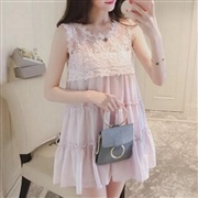 鏤空蕾絲拼接無袖雪紡連身裙 [連身裙] #1-白色...