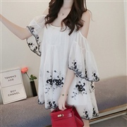 一字肩吊帶背心連身裙刺繡網紗 [連身裙] #1-白...