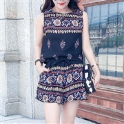 無袖民族上衣+鬆緊腰短褲 [套裝] #1-白色 #...