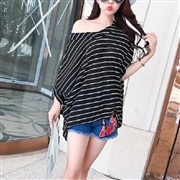 寬鬆條紋蝙蝠袖小 [上衣] #1-黑色 #2-粉紅...