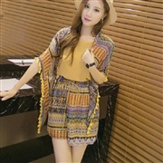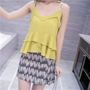 雪紡背心+印花鬆緊腰短褲 [套裝] #1-黑色 #...