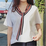 配色領帶綁帶上衣短袖 [上衣] [TEE]