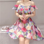 一字領裙 露肩印花連身裙 [連身裙] #1- 紅色...