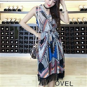 大流蘇收連身裙 [連身裙] #1-卡其色 #2-藍...
