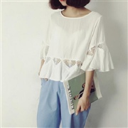 花瓣袖顯瘦蕾絲鏤空拼接 [上衣]