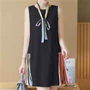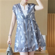 無袖羽毛印花雪紡連身裙 [連身裙]
