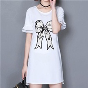 修身印花套頭中長款 [連身裙] #1-白色 #2-...