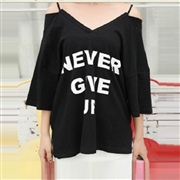 露肩字母寬鬆上衣 [上衣] #1-白色 #2-黑色