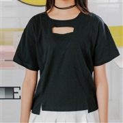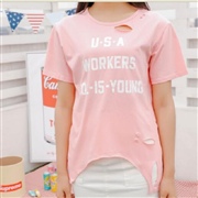 破洞寬鬆圓領短袖 [上衣] [TEE] #1-白色...