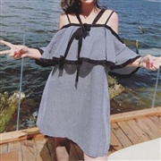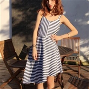 不規則大裙擺條紋吊帶背心 [連身裙]
