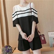 短袖上衣拼色上衣+寬鬆短褲 [套裝]