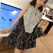 黑白蕾絲拼接無袖 [連身裙]