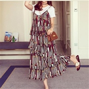 英文圖案雪紡條紋背心裙 [套裝] #1-英文款 #...