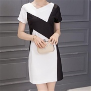 包臀短袖拼接黑白 [連身裙]