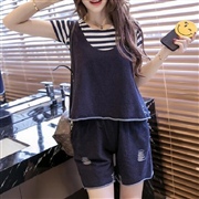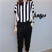 條紋顯瘦兩件套 [套裝] #1-灰色 #2-黑色