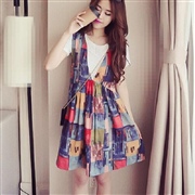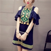 民族短袖連身裙 [連身裙] #1-白色 #2-深藍...
