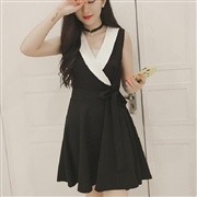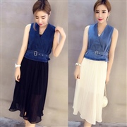 拼接腰帶無袖雪紡 [連身裙] #1-白色 #2-黑...