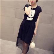 拼接中長款短袖蓬蓬裙 [連身裙]