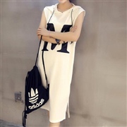 連帽無袖中長款套頭字 [連身裙] #1-白色 #2...