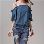 露肩吊帶背心襯衫一字領寬鬆 [上衣]