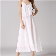 吊帶背心荷葉邊大擺長裙 [連身裙] #1-白色 #...