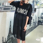 中長字母印花圓領網紗 [連身裙] #1-米白色 #...