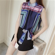 無袖套頭上衣 [上衣] #1-藍色 #2-橘粉色