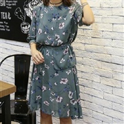 花朵綁帶連身裙雪紡中長裙 [連身裙] #1-綠色 ...