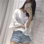 氣質鏤空喇叭袖襯衫 [上衣] #1-白色 #2-黑...