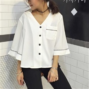 荷葉邊喇叭袖上衣雪紡衫 [上衣]