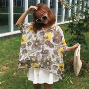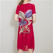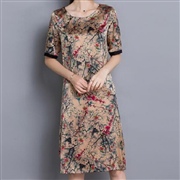 桑蠶絲寬鬆民族印花 [連身裙] #1-黃梅花 #2...