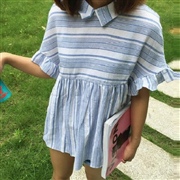 木耳邊套頭條紋襯衫娃娃衫 [上衣]