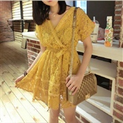 綁帶蕾絲連身裙+吊帶背心 [連身裙] #1-粉紅色...