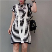 織帶邊冰絲針織 [連身裙] #1-藍條紋白 #2-...