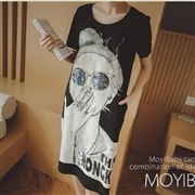 亮片墨鏡印花美上衣 [連身裙] #1-黑色 #2-...