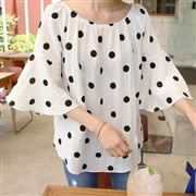圓點五分袖喇叭袖襯衫 [上衣]